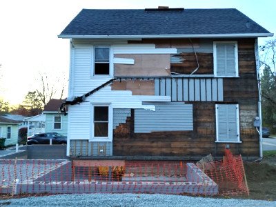 - Remove the unfortunate addition and the rear of the house (southwest side) and build a two story addition from ground up. This would remove the poorly designed and constructed part of the house. Since this was at the rear of the house, the new addition would have minimal impact on the streetscape. However, this meant we were adding space (second floor) too close to the property line, so a variance was required.
